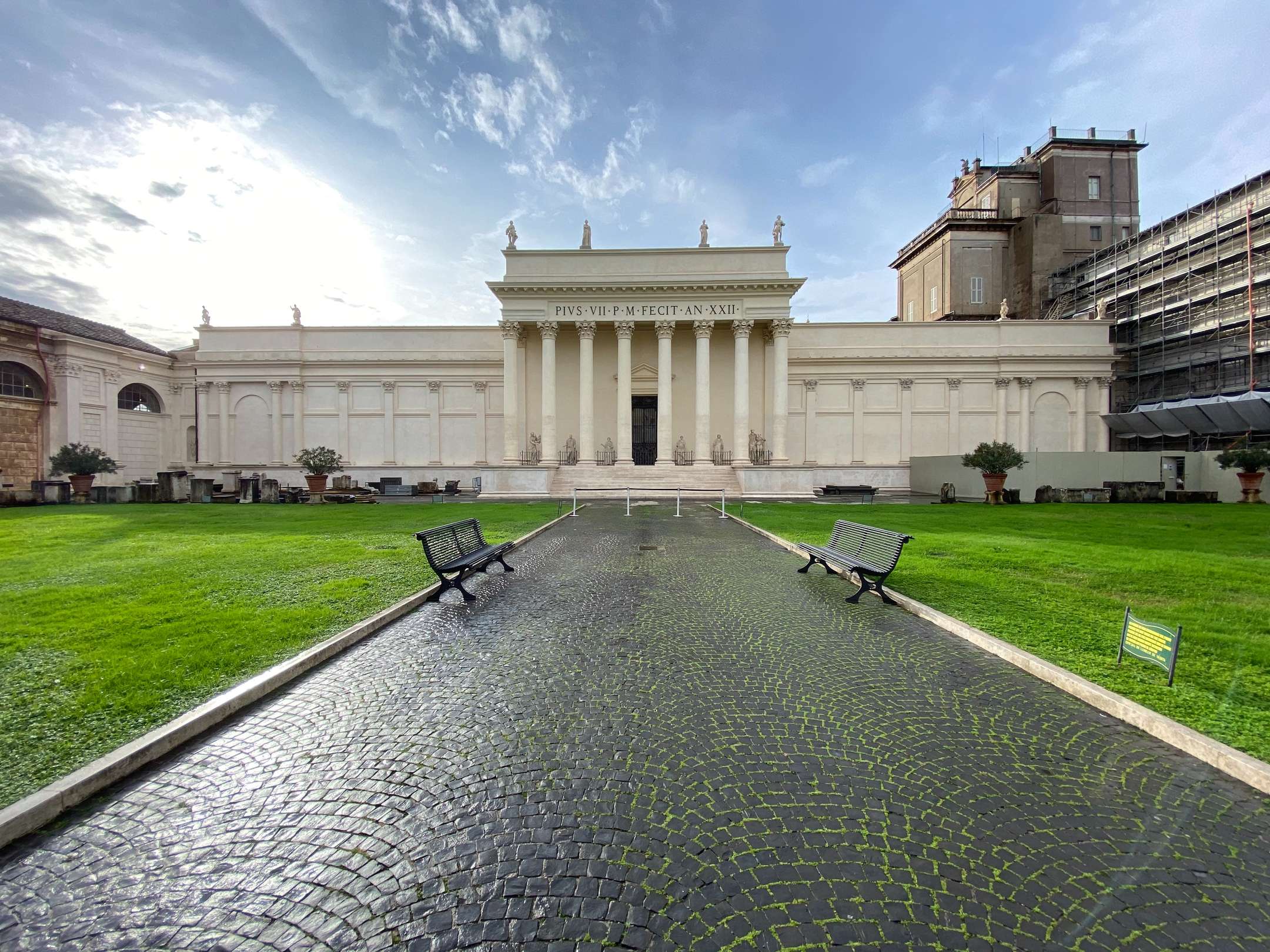 The Vatican Museums is located within Vatican City, which is an independent city-state surrounded by the city of Rome, Italy. The museum is situated in the northern part of the city-state, near the famous St. Peter's Basilica and Square . Visitors can access the Vatican Museums via the museum entrance, which is located just outside the Vatican walls on Viale Vaticano. The entrance is marked by a large white wall with the words "Musei Vaticani" inscribed in bold letters.