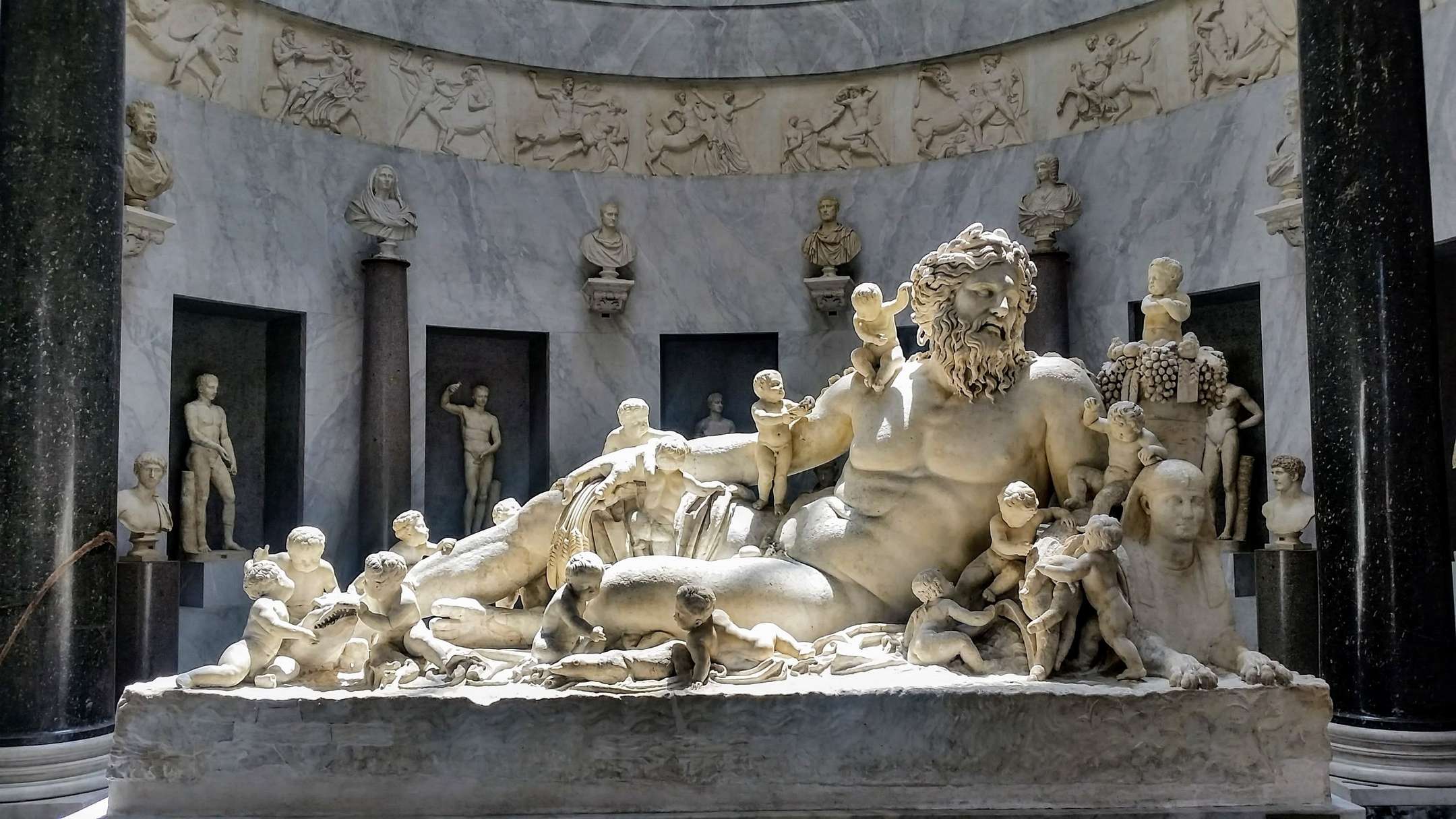 The Nile is a Roman statue that dates back to the 2nd century AD. The statue depicts the river god Nile reclining on a rock, with sixteen children symbolizing the Nile's tributaries. The statue is located in the Pio-Clementine Museum.